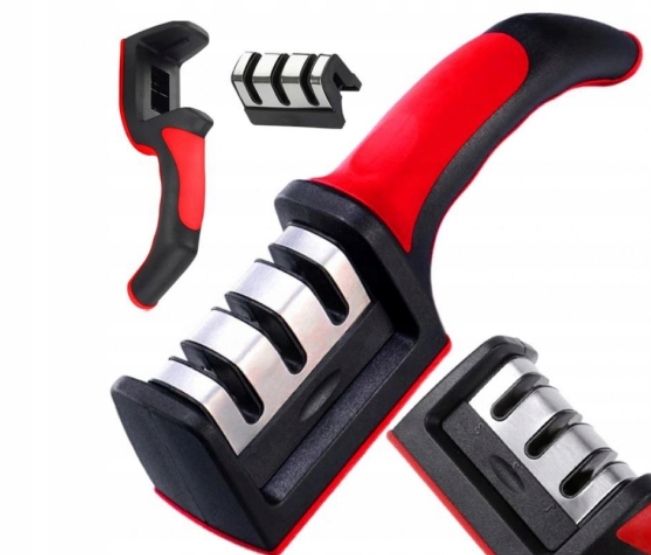 Триступенева точилка для ножів. Цей вдосконалений інструмент забезпечить належне та всебічне заточування навіть найтупіших і занедбаних ножів завдяки використанню 3 гнізд для заточування різними способами!