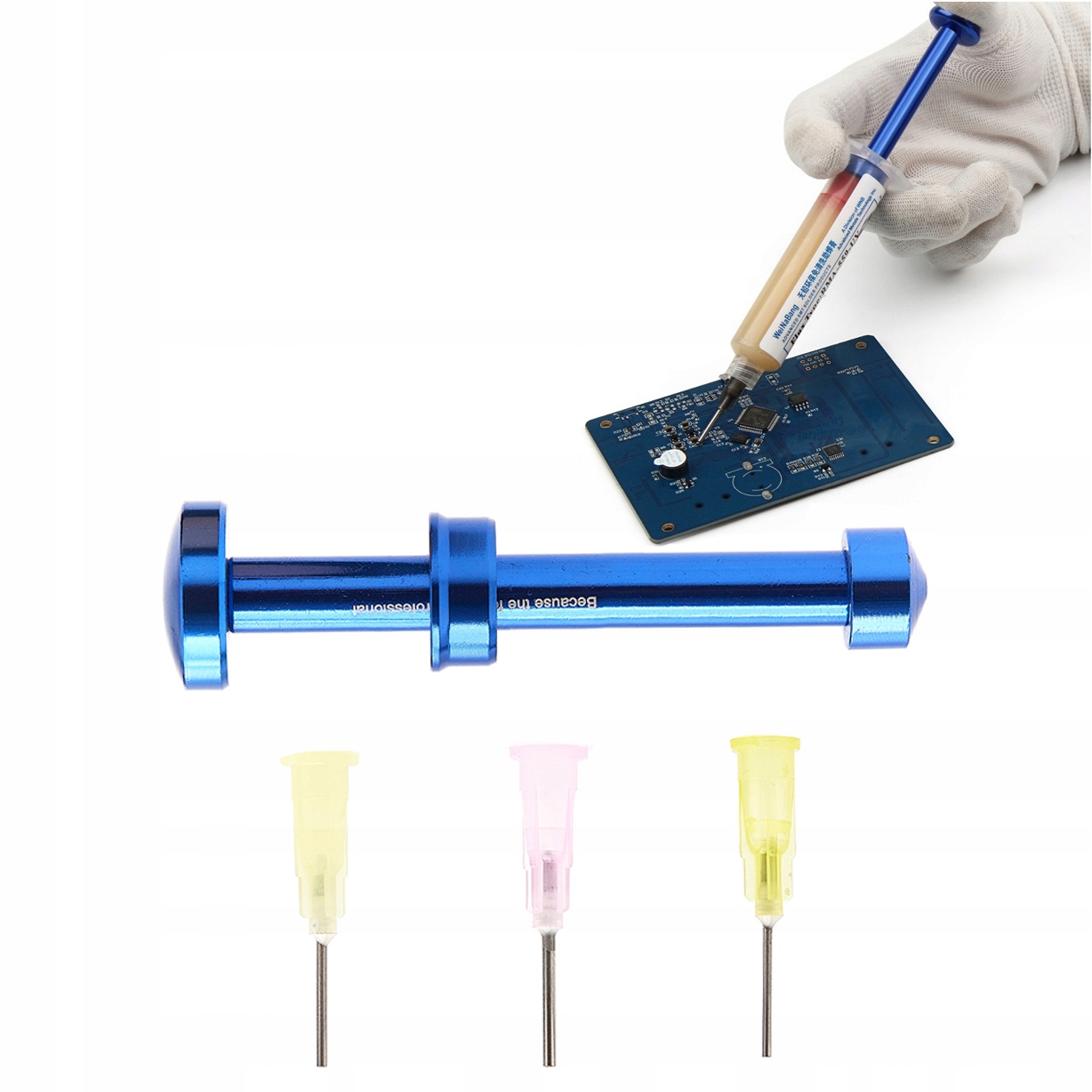 металевий поршень, виготовлений з алюмінієвого сплаву, призначеного для шприців та картриджів з паяльною пастою або потоком. Поршень у шприці, що натискається вручну, дозволяє точно дозувати пасти та тополі на друкованій табличці.