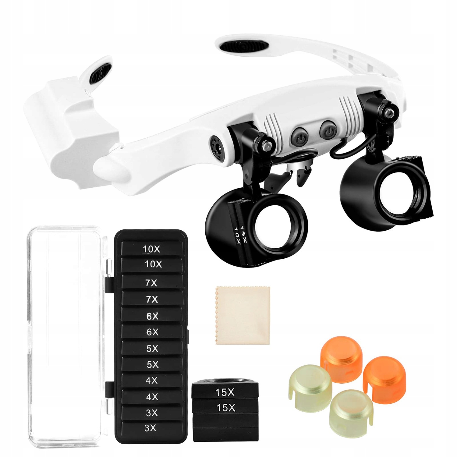 2. З обох боків лупи є 2 світлодіодні лампи, кут нахилу регулюється, а 14 різних ступенів збільшення в аксесуарах легко замінити.