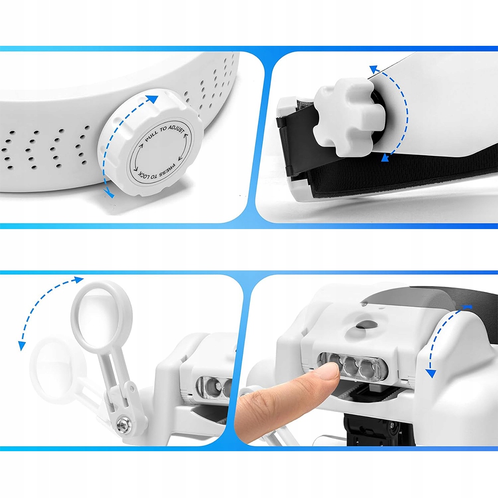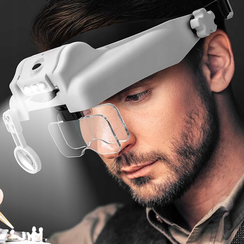 🔎 Професійні збільшувальні окуляри на голову з регульованим ремінцем і світлодіодним підсвічуванням, ідеальні для точної роботи, що вимагає відмінної видимості.