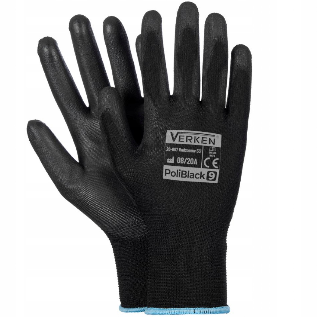 verken poliblack робочі рукавички до професійних рукавичок, виготовлених з поліестеру та поліуретану, покритого. Рукавички з дуже хорошими параметрами міцності. Ідеально підходить для будівельних робіт, фермерських робіт, в саду чи в майстерні.