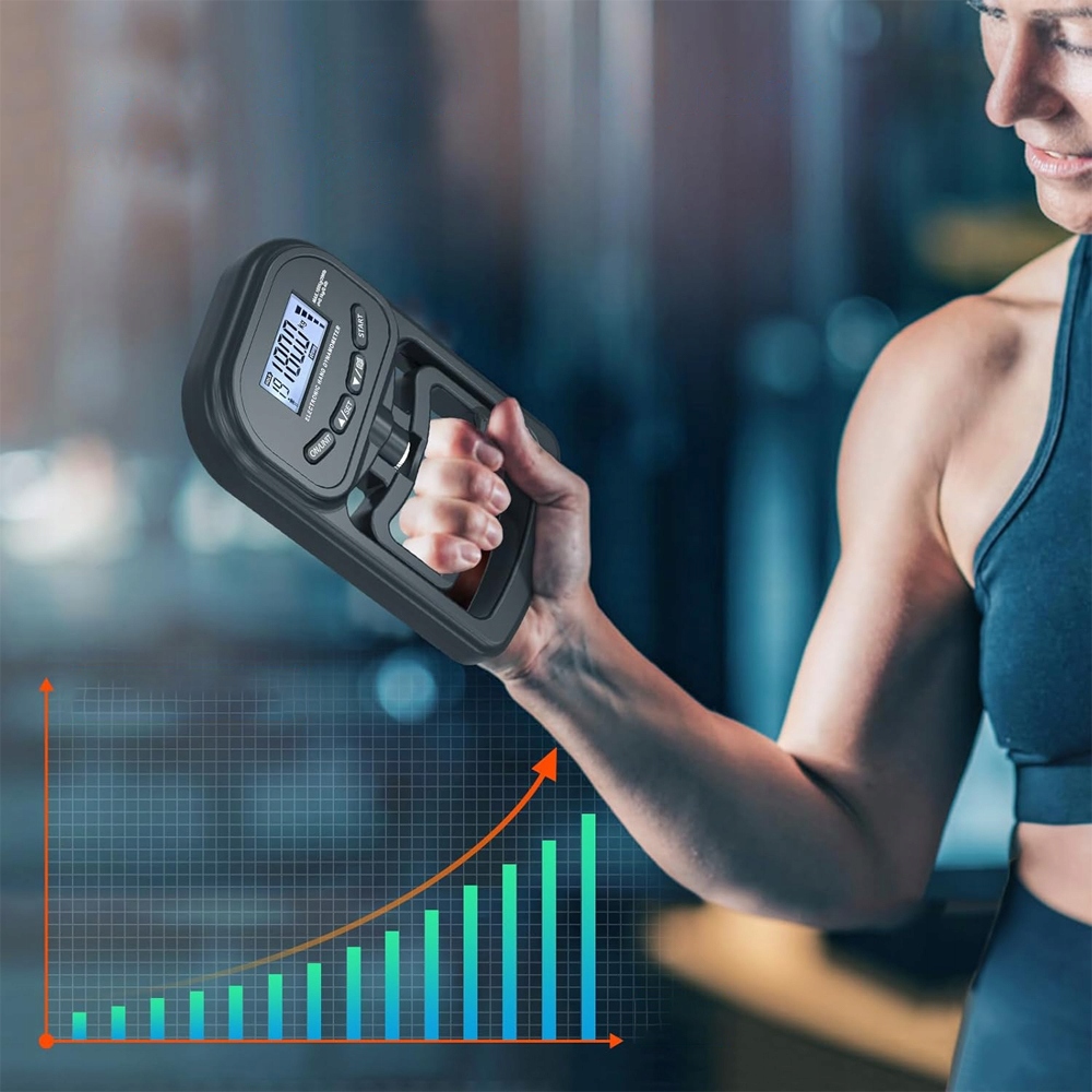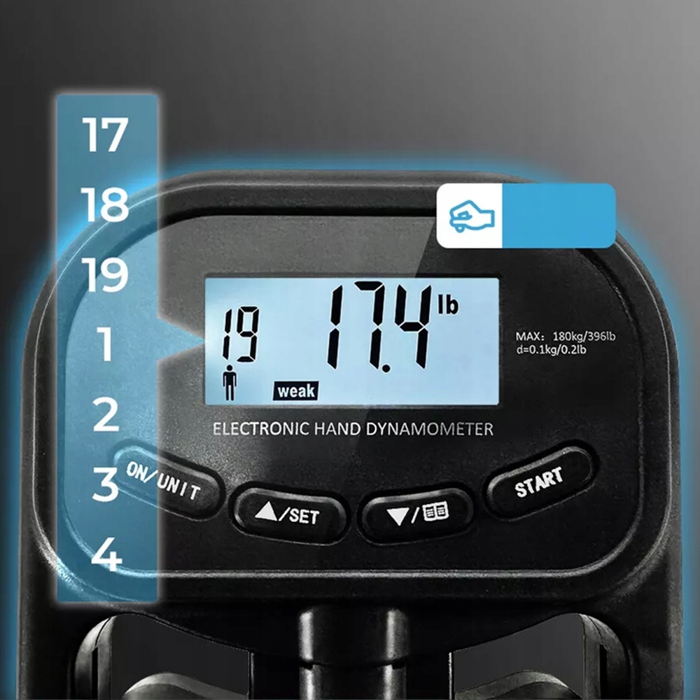 ✨✨ Оснащений точним датчиком, він дозволяє точно вимірювати силу захоплення та забезпечує миттєве зчитування на світлодіодному дисплеї. Діапазон вимірювань до 180 кг.