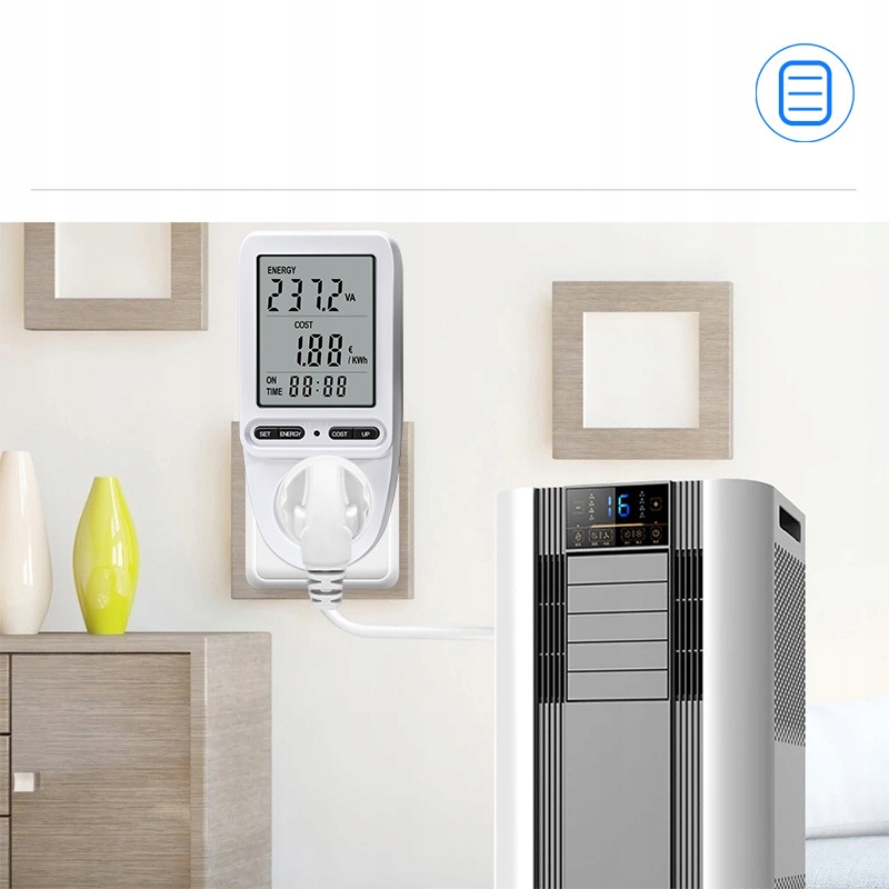 - Ви можете визначити споживання енергії, напругу, електроенергію, частоту потужності, коефіцієнт потужності, коефіцієнт потужності, підключений до нього;