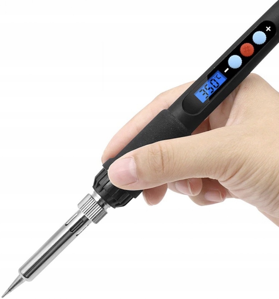 Прецизійний паяльник з регулюванням температури від 180°C до 500°C з підсвічуванням LCD-дисплея підходить для різних видів пайки< /b >, завдяки можливості регулювання температури. Швидко нагрівається.