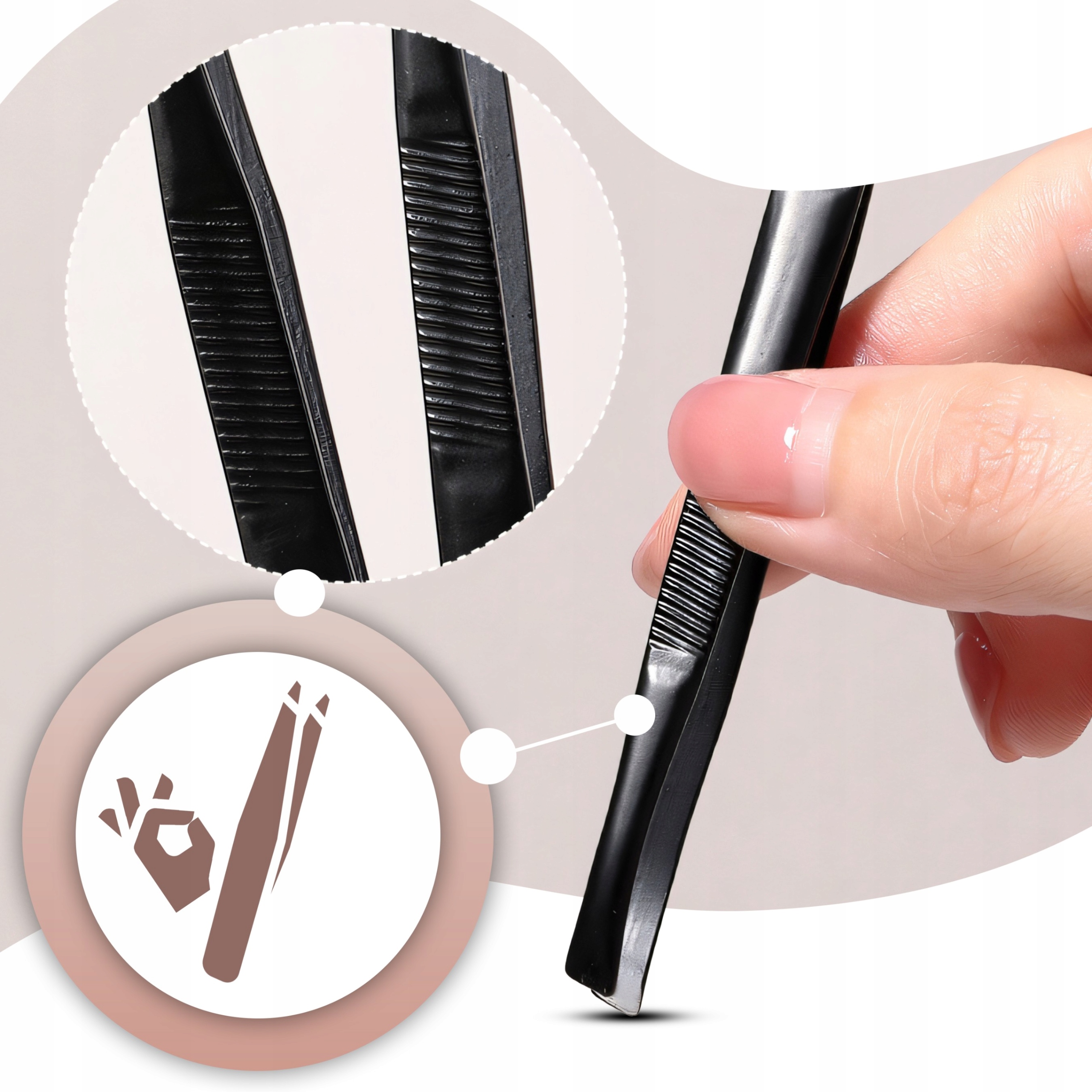 ✔️ Чорний колір пінцета додає елегантності та ідеально підходить до будь-якої руки, надаючи їй сучасний вигляд. Це інструмент, який не тільки працює, але й виглядає чудово!