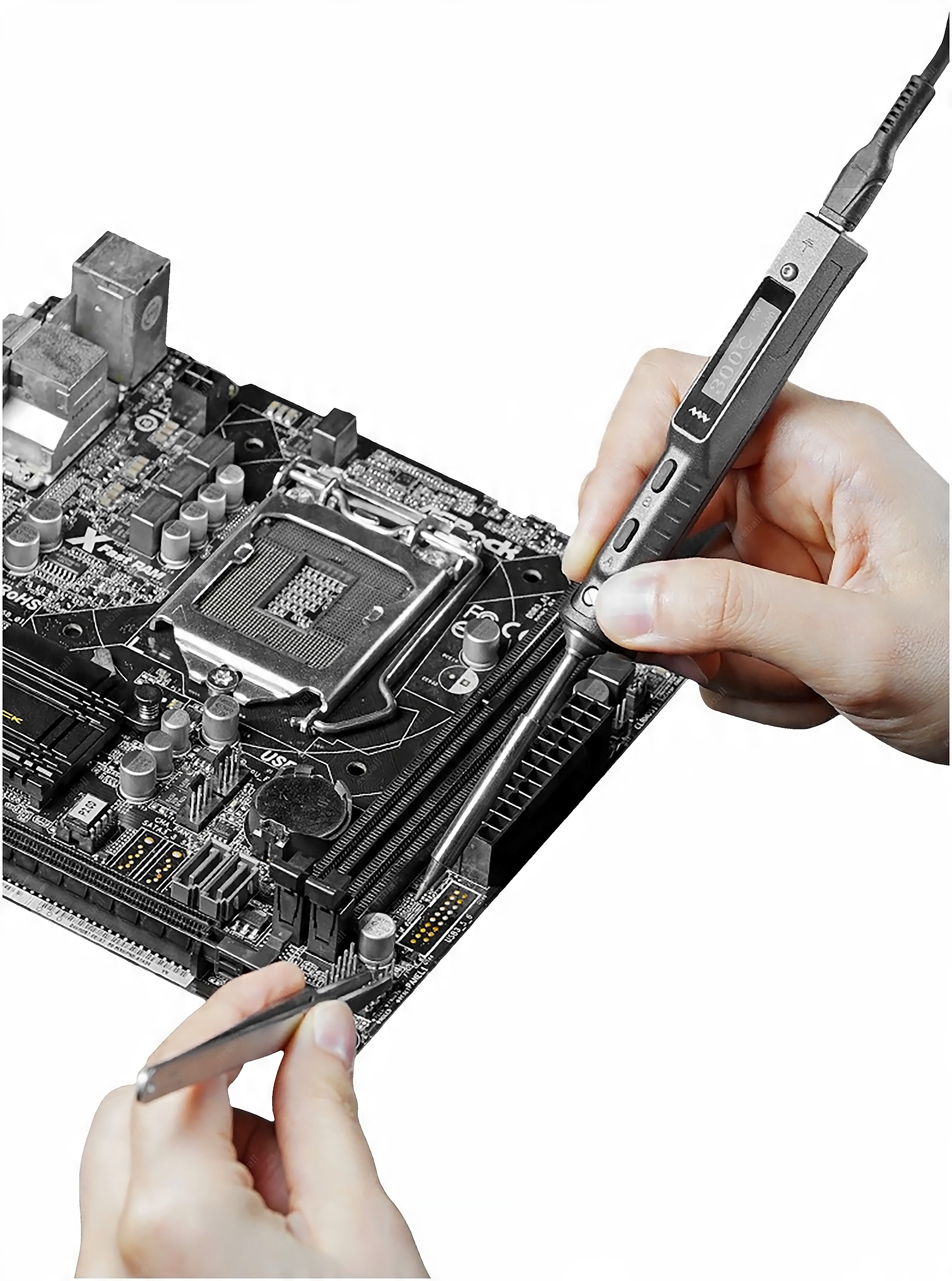 Паяльник виготовлений точно, швидко нагрівається до заданої температури, додатковими перевагами є невеликі розміри та цифрове керування.