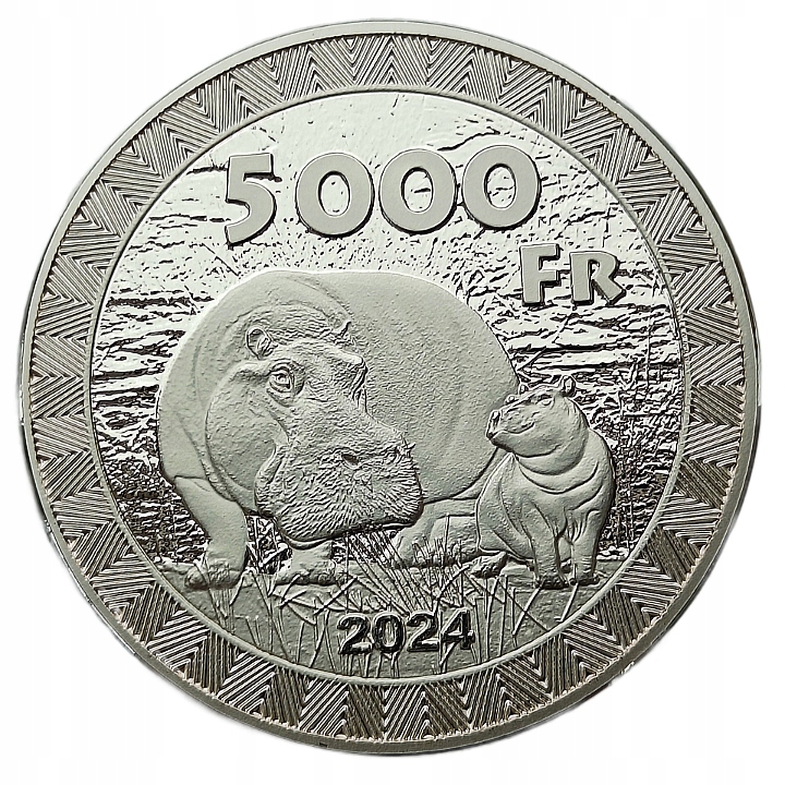 TOGOLAND WSCHODNI 5000 FRANCS HIPPOTA WITH YOUNG 2024 40mm PROOFLIKE