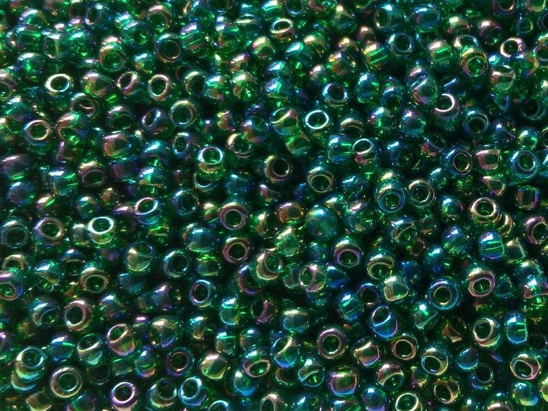 Символ кольору - 180 Transparent-Rainbow Olivine - намистиниоливково-зелені, блискучі кольорами веселки, напівпрозорі.