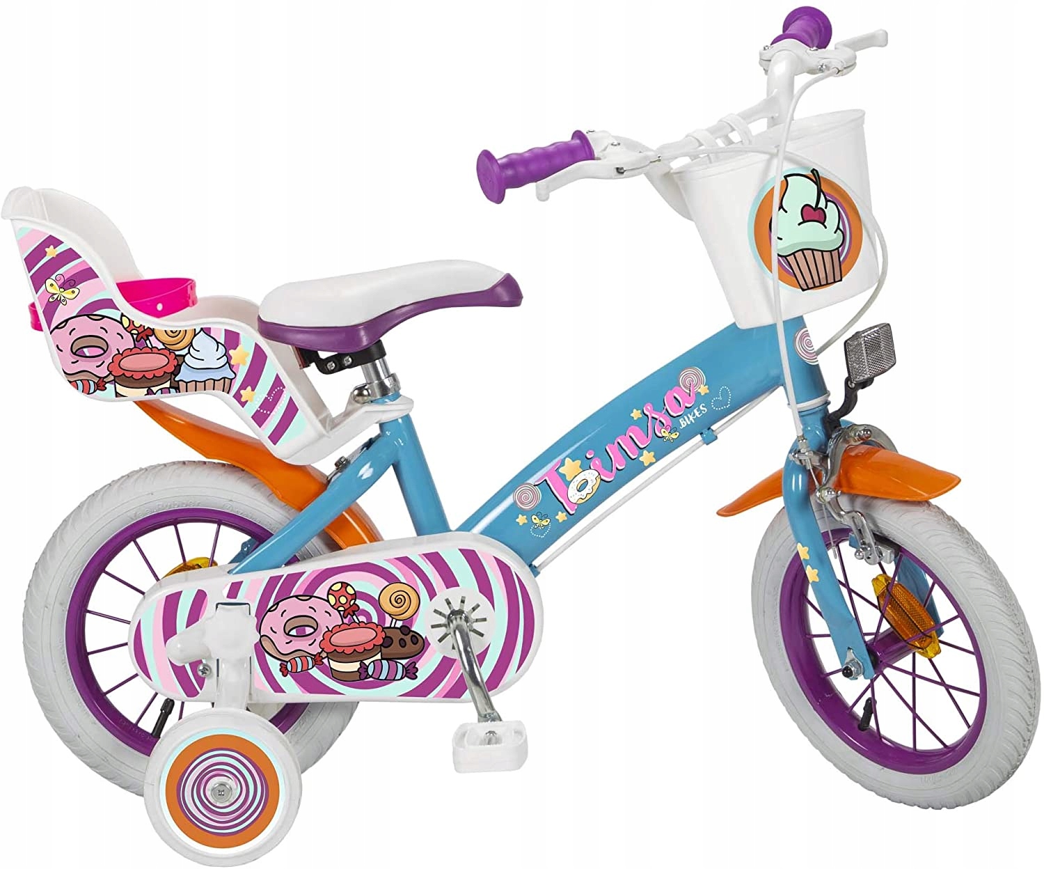- аксесуари: передній кошик, кольорове заднє сидіння для ляльок, передні та задні ліхтарі, відбивачі на обох ободах, кольорові бічні колеса, кольоровий чохол на ланцюжок