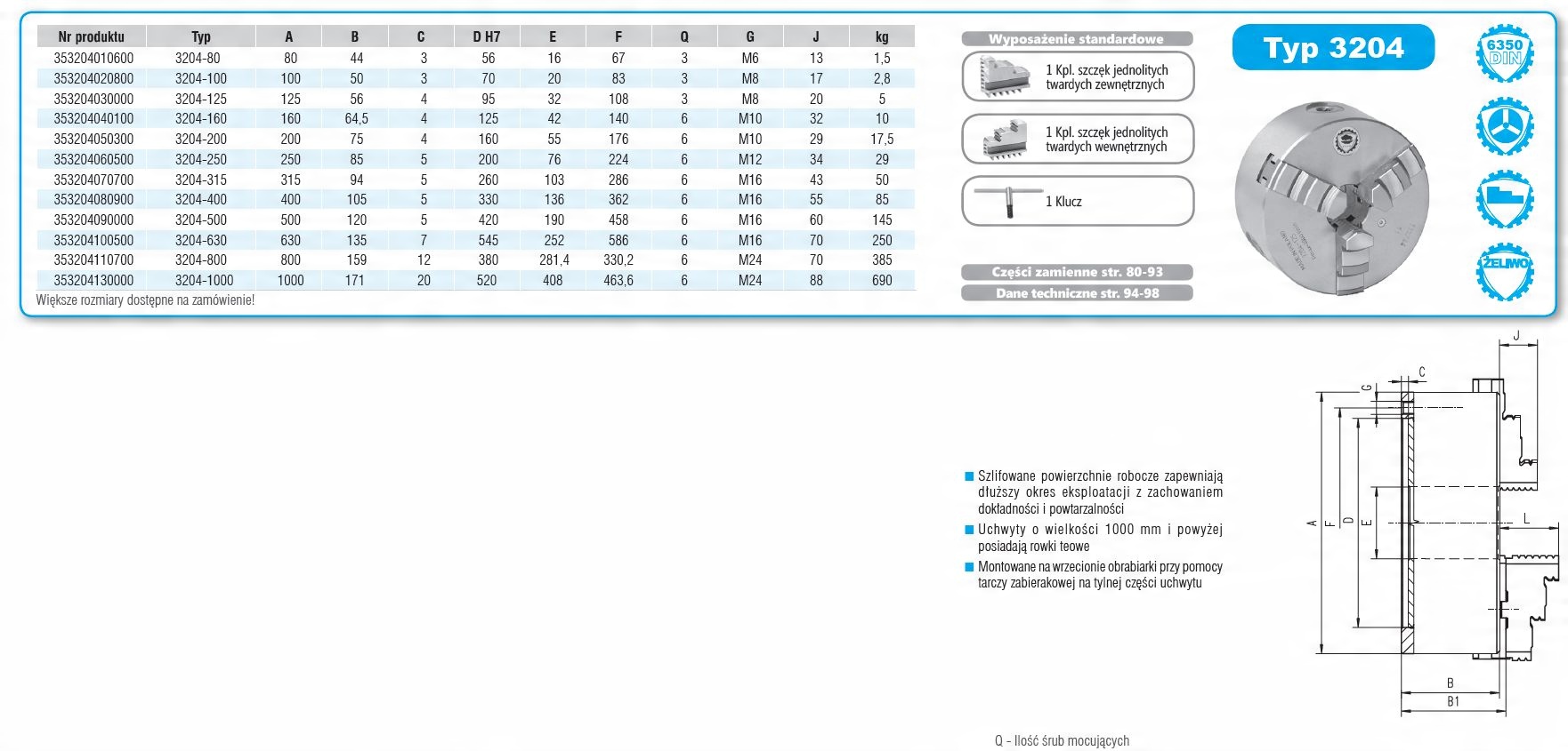 ТОКАРНИЙ ПАТТРОН 3204-100 ТРИКУЛАЧНИЙ, САМОЦЕНТРУЮЧИЙ - BISON BIAL BIAŁYSTOK S.A.