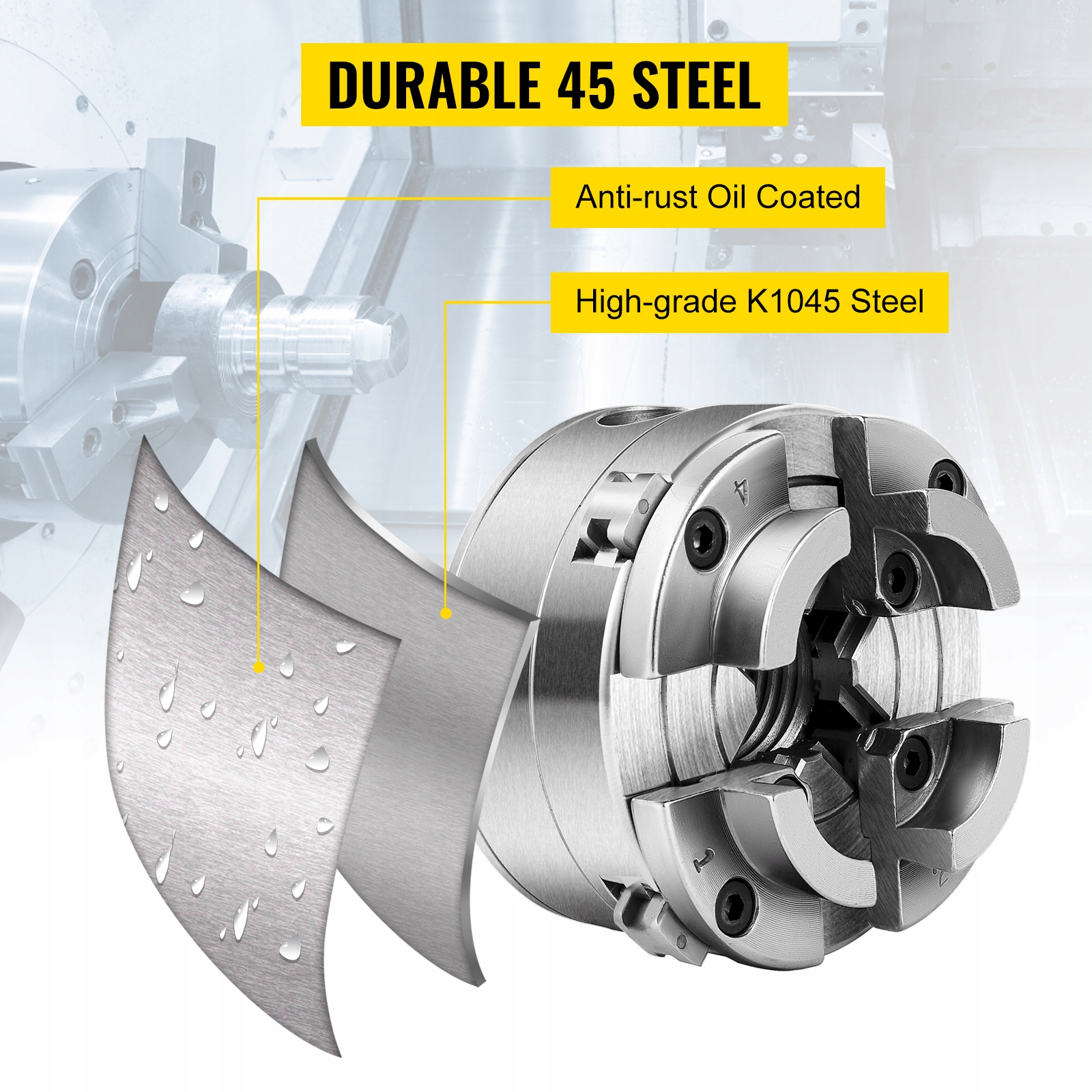 - Чотирьохкулачковий токарний патрон загартований високоякісною сталлю, стійкою до іржі та корозії.