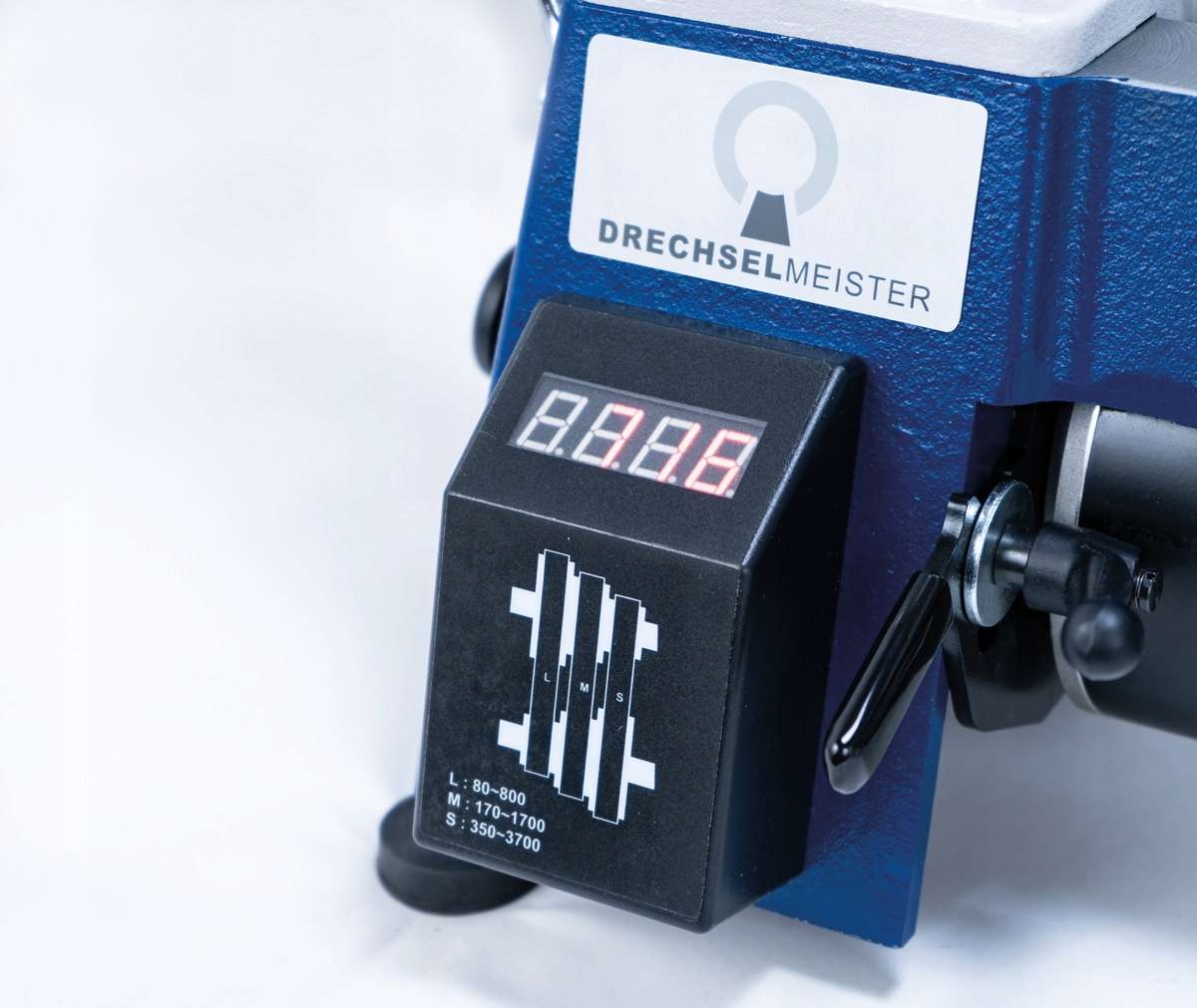 Токарний верстат оснащено перетворювачем частоти, який перетворює змінну напругу з мережі з фіксованою частотою в напругу, частоту якої можна регулювати. Це дозволяє набагато краще розподіляти потужність, особливо на низьких швидкостях, ніж у випадку пристроїв зі стандартною електронікою. Регулювання швидкості плавне за допомогою ручки. Їх широкий асортимент дозволить вам виконати багато проектів, від повороту ручок та інших тонких предметів до повороту мисок. Читання обертів на дисплеї. Магнітну панель управління можна розмістити в зручному для оператора місці на токарному верстаті!