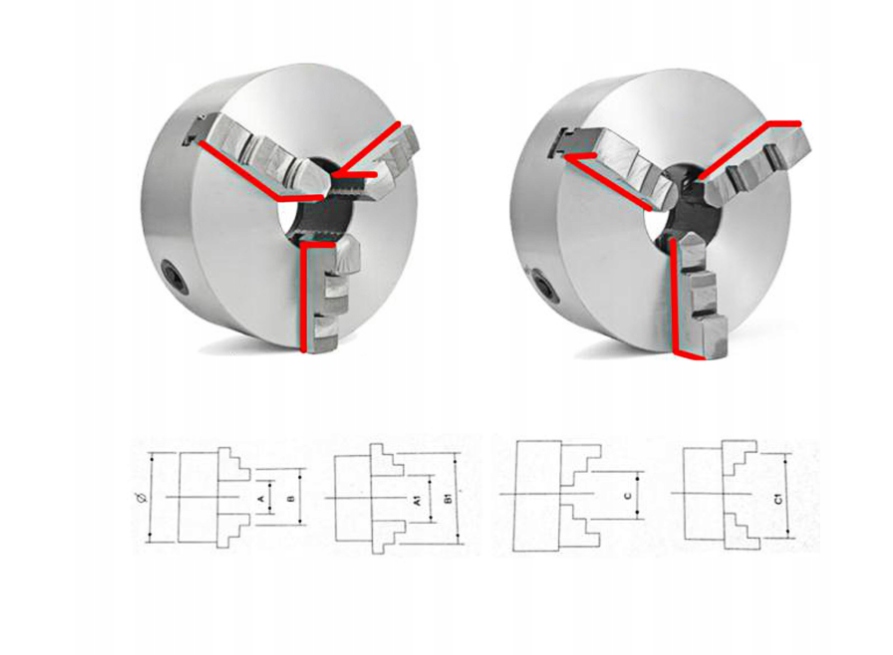 Патрон має два набори внутрішніх і зовнішніх губок. Цей тримач має великий діапазон затискання та підходить для затискання різних промислових деталей.