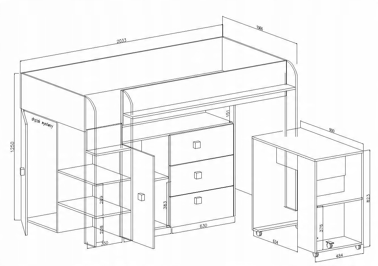 TOLEDO 1 двоярусне ліжко-антресолі з письмовим столом