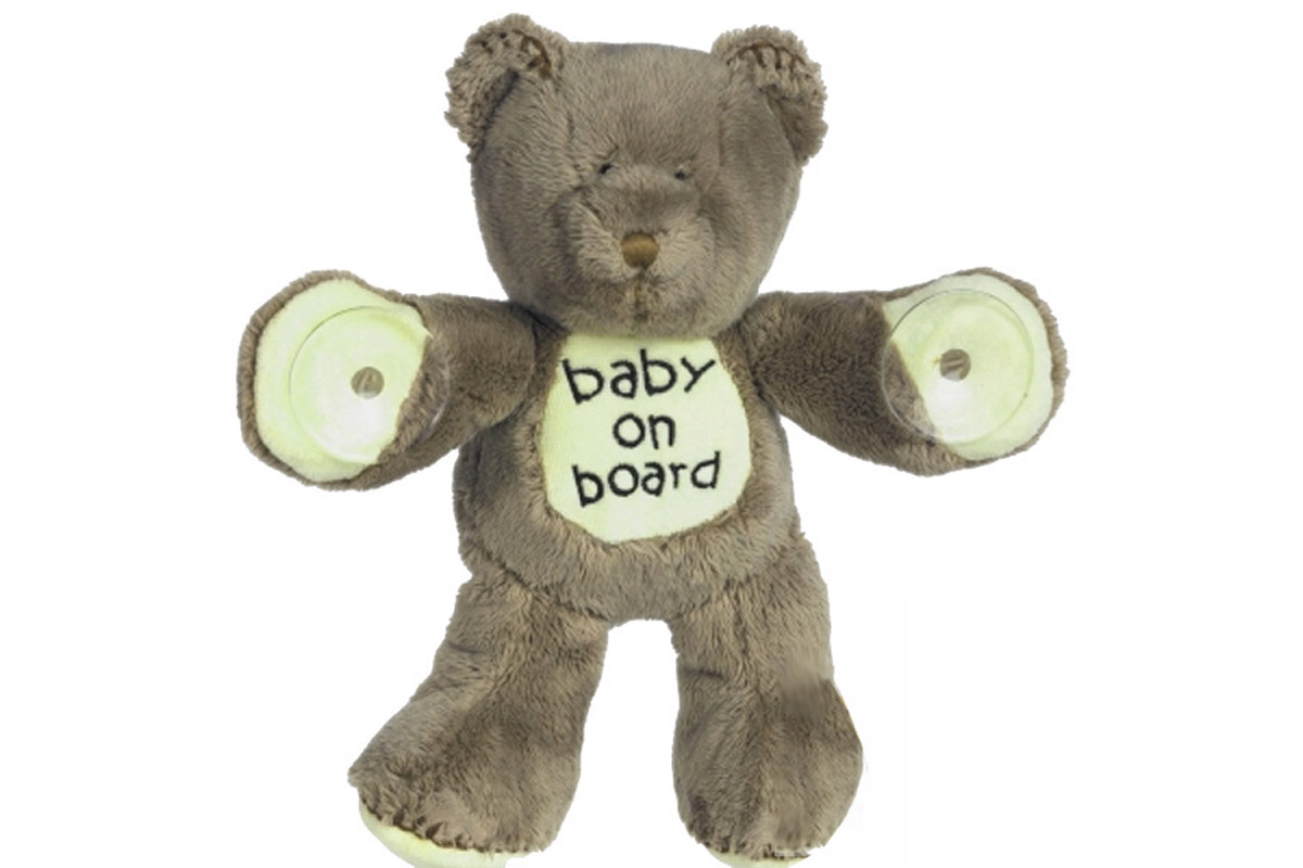 Ведмедик Тедді - це дуже м'яка і приємна на дотик м'яка іграшка, зшита вручну. На животі у неї напис англійською «baby on board». На передніх лапах є дві присоски, за допомогою яких ви можете легко прикріпити ведмедика до гладкої слизької поверхні. Плюшевий ведмедик зроблений з того ж матеріалу, що і популярні кудлаті Tolo shaggy. М'яку іграшку можна прати в пральній машині. Іграшка призначена для дітей з першого дня життя.