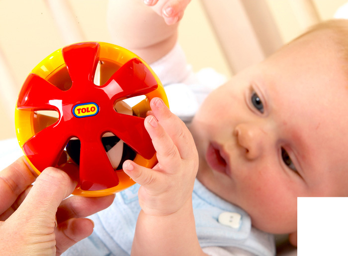 Барвисте брязкальце у формі кулі, яке легко тримати в руках. Маленька кулька, поміщена всередину, видає приємний звук при перекочуванні. Брязкальце Toddler призначене для ігор у приміщенні, на вулиці та у воді, оскільки брязкальце тримається на поверхні води. Ідеально підходить для перших спроб перекочування та співпраці у спільній грі, тобто перекочування дзвінкого м’яча назустріч один одному. Це допомагає та заохочує розвиток усіх основних органів чуття дитини, і, перш за все, дитина отримає масу задоволення від спостереження за рухами та слухання звуків під час гри з м'ячем.