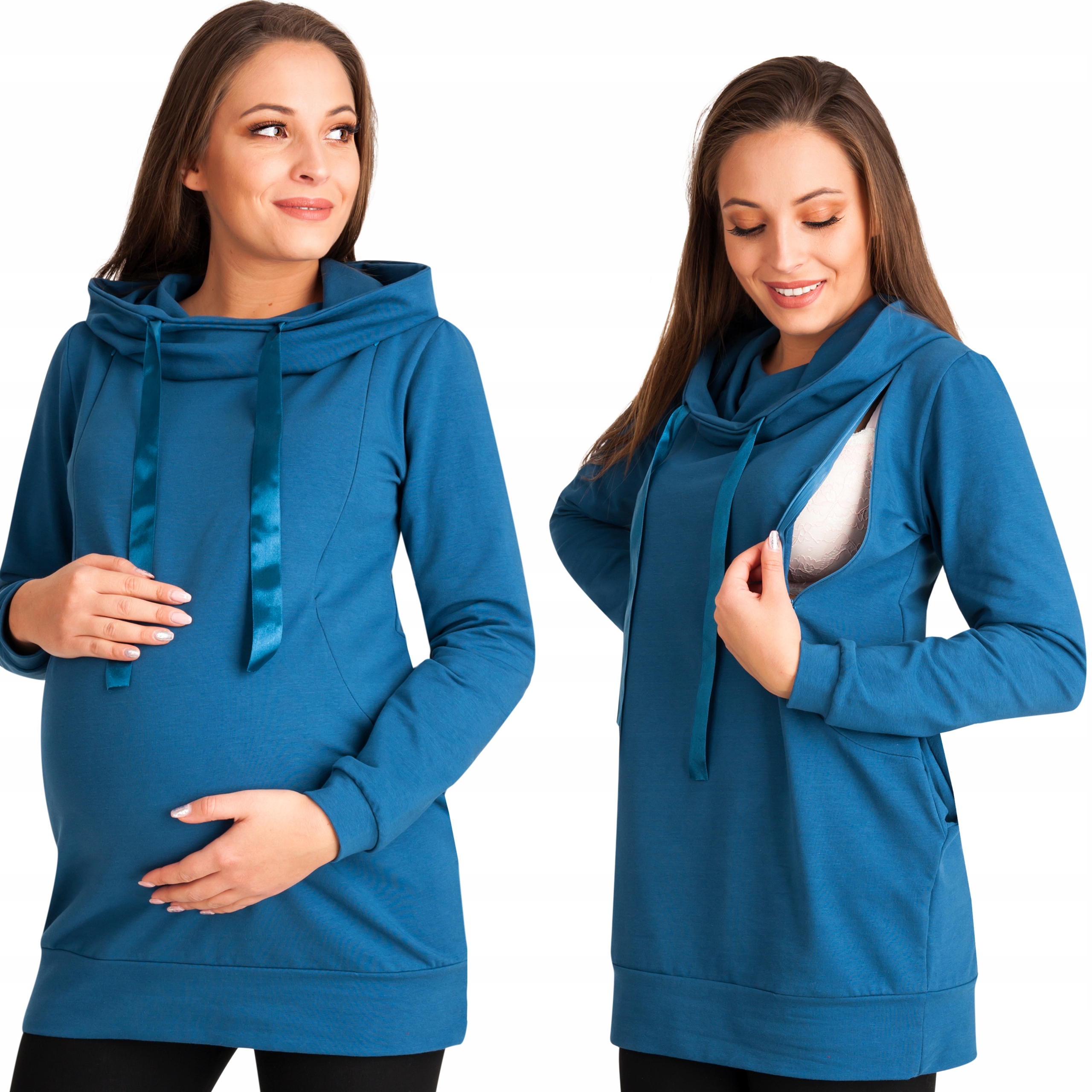 Високий капюшон - ще одна перевага цієї толстовки. Його також можна оформити в шарф. Дві блискавки з обох боків грудей - ідеальне рішення для годуючих мам. Застібки-блискавки непомітно розташовані та забезпечують великий комфорт у використанні.
