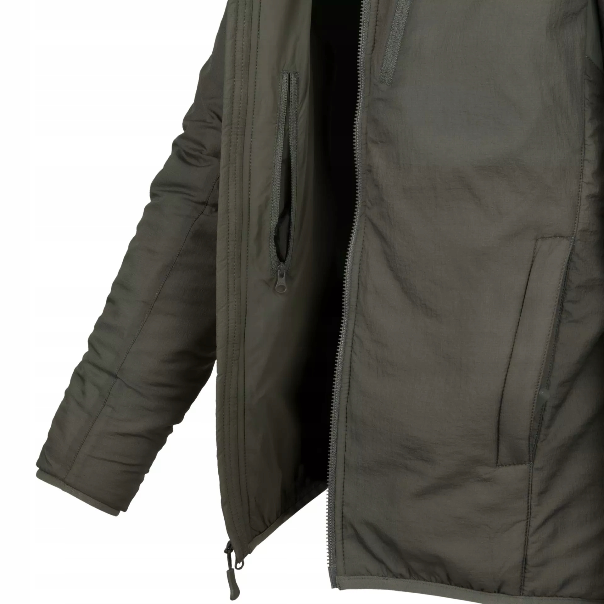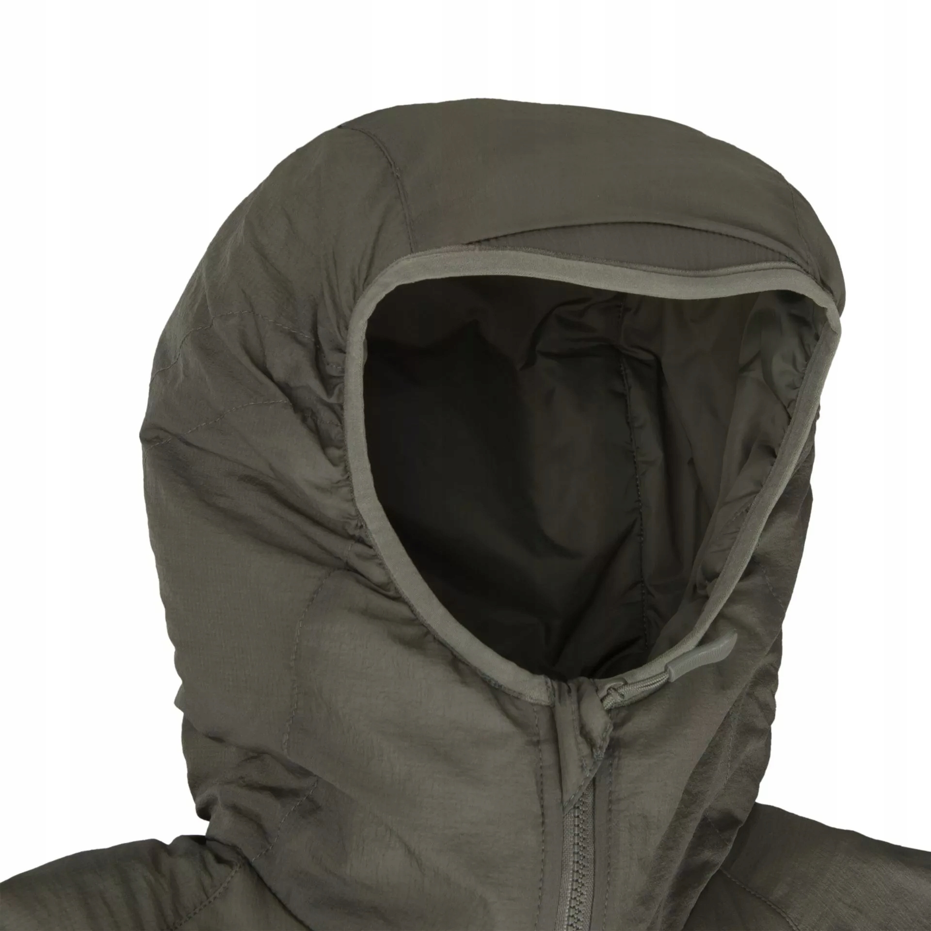 Helikon Wolfhound Hoodie - це легка куртка з капюшоном, яку можна використовувати як самостійний утеплюючий шар або як ізоляційний шар у поєднанні з софтшеллом або хардшеллом. Утеплювач Climashield Apex, який використовується в куртці, зігріває користувача в будь-яких умовах. Якщо він намокне, він швидко висихає.
