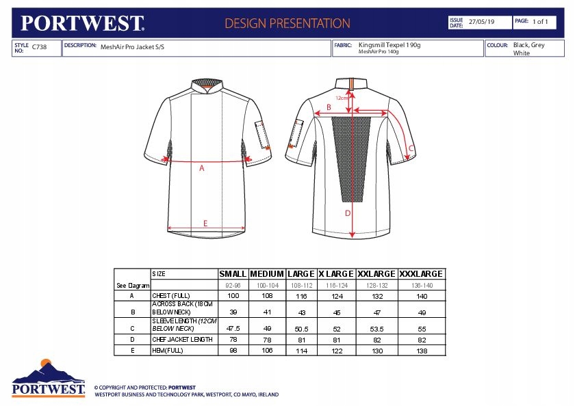 Світшот C738 ідеально підходить для роботи на дуже гарячих кухнях завдяки сітчастим панелям MeshAir Pro. Має подвійну потайну застібку спереду, короткі рукави та кишеню для ручок. Він був розроблений у стильний і дуже практичний спосіб.