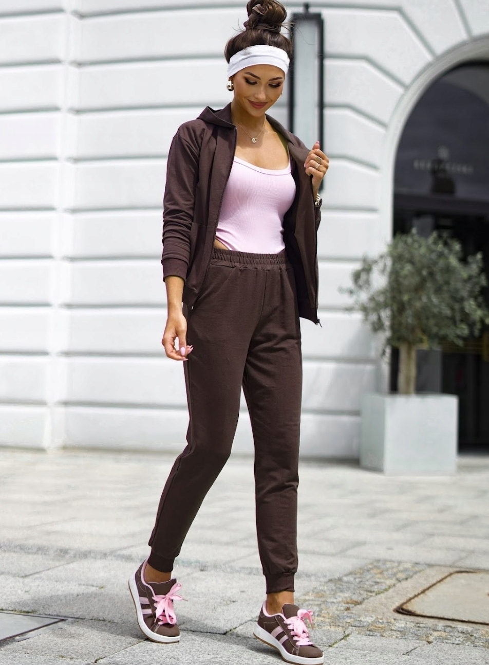 Світловий бавовняний костюм, пришитий з високоякісного трикотажного одягу від польського виробника. Толстовка з капюшоном та кишенями кенгуру та зручними високими штанами та кишенями створюють ідеальний набір щодня. М'яка, гнучка бавовна з додаванням еластану забезпечує комфорт та свободу руху. Доступний у розмірах s -xl.