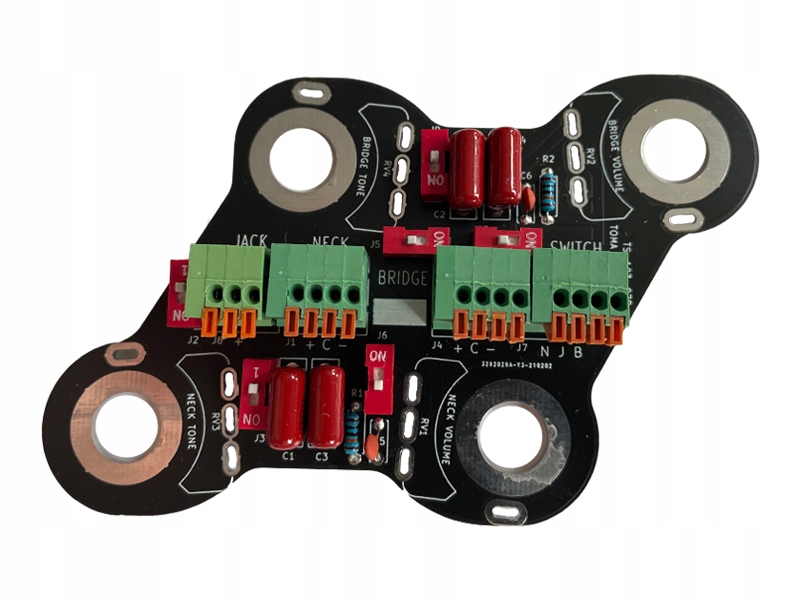 Плати мають вбудовані конденсатори тону та високі частоти. системи для кожного перетворювача. Мікроперемикачі дозволяють вибрати конденсатор, вимкнути систему відводу високих частот і від’єднати котушки для кожного перетворювача окремо.