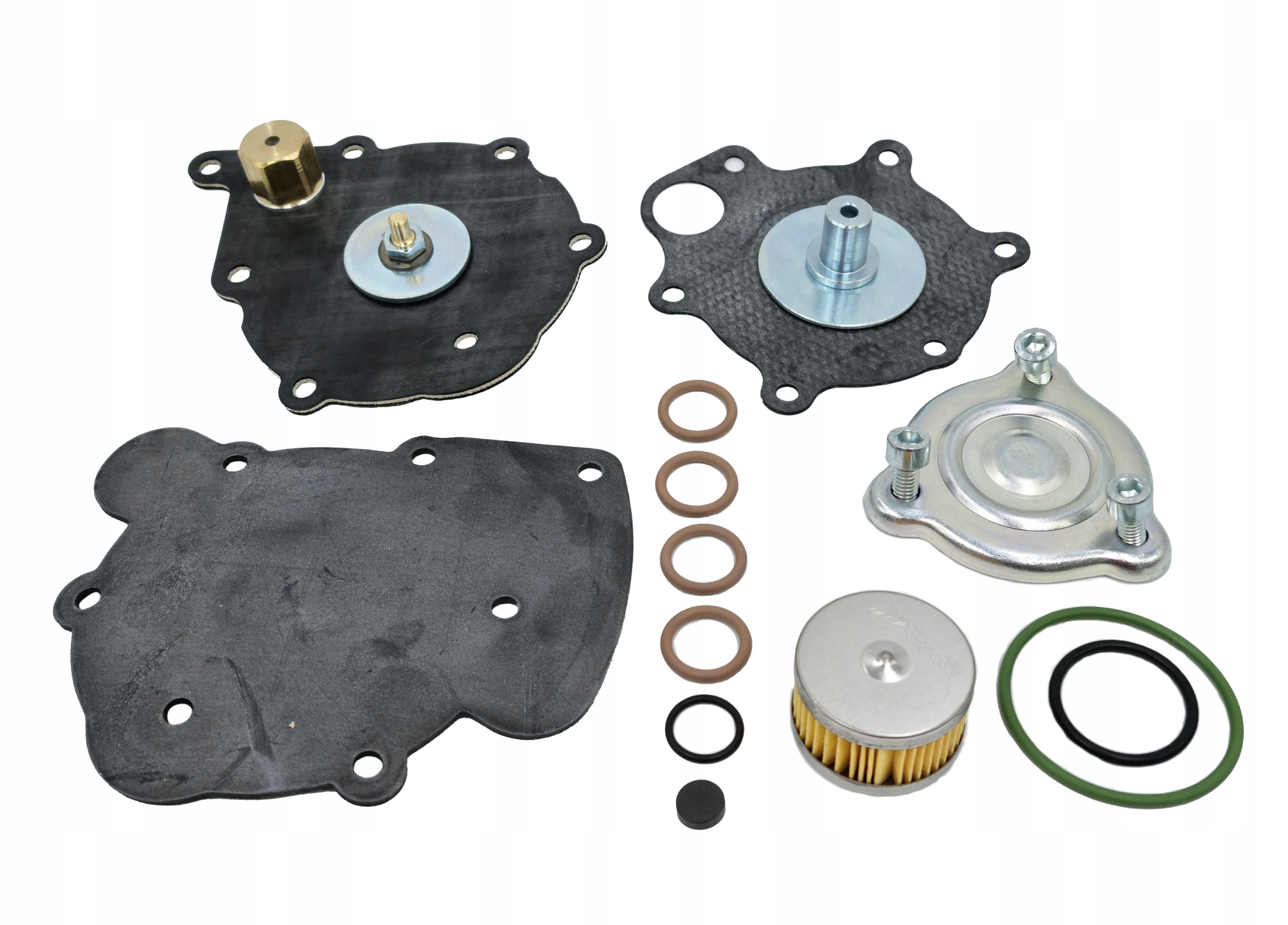 Ремонтний набір, призначений для регенерації редуктора Tomasetto з вбудованим фільтром рідкої фази. У набір входять елементи, що швидко зношуються, передбачені виробником для заміни при регенерації випарника.