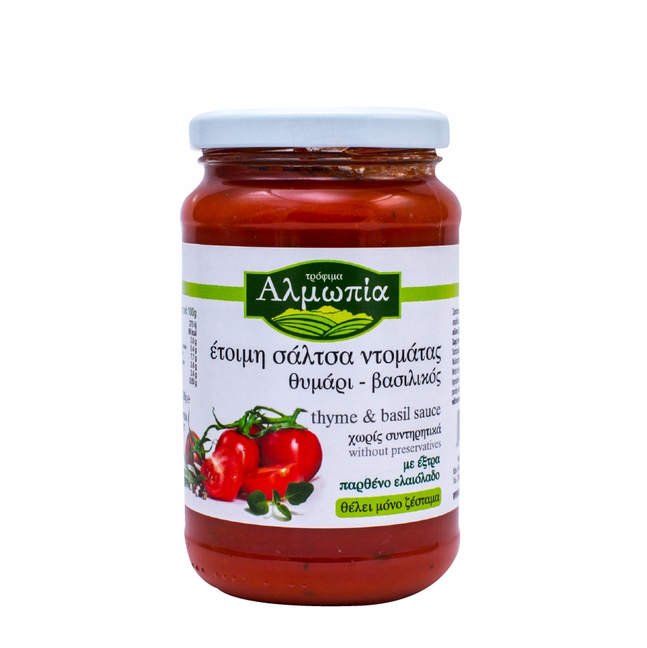 Томатний песто з ароматним чебрецем і базиліком – це 360-грамова упаковка, насичена насиченим смаком і натуральними інгредієнтами. Унікальна суміш містить свіжі помідори, чебрець, базилік, часник, петрушку, цибулю, селеру, злегка підсолоджені невеликою кількістю цукру та приправлені дрібкою солі. Все було увічнено в оливковій олії першого віджиму чудової якості, створюючи продукт без штучних консервантів. Грецький песто — це кулінарний досвід із Греції, який ідеально підходить для різноманітних страв, додаючи неповторного смаку вашим кулінарним експериментам.