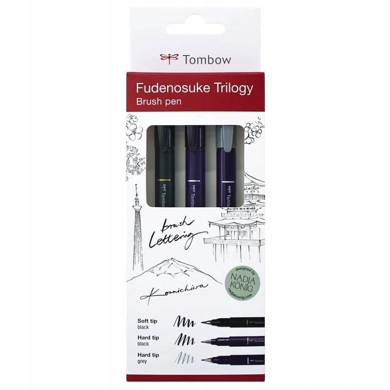 Томбо Фуденосуке з гнучким наконечником пензля ідеально підходить для каліграфії. Лінія змінюється від тонкої до товстої, залежно від тиску, що чиниться на наконечник. Барвисті щітки - це твердість 1 і чорна за твердістю 1 і 2. Вони в першу чергу підходять для каліграфії, описів, написання вручну тощо. Чорнило на основі води та без запаху.