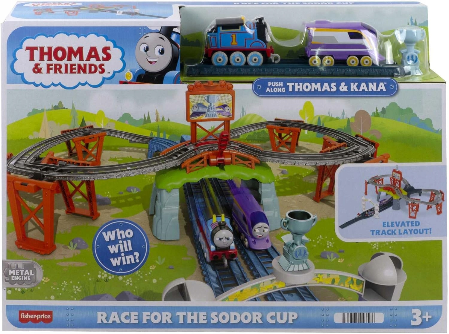 - Ігровий набір «Томас і друзі» з локомотивами «Томас і Кана», що штовхають і тягнуть, забезпечать багато цікавих перегонів.