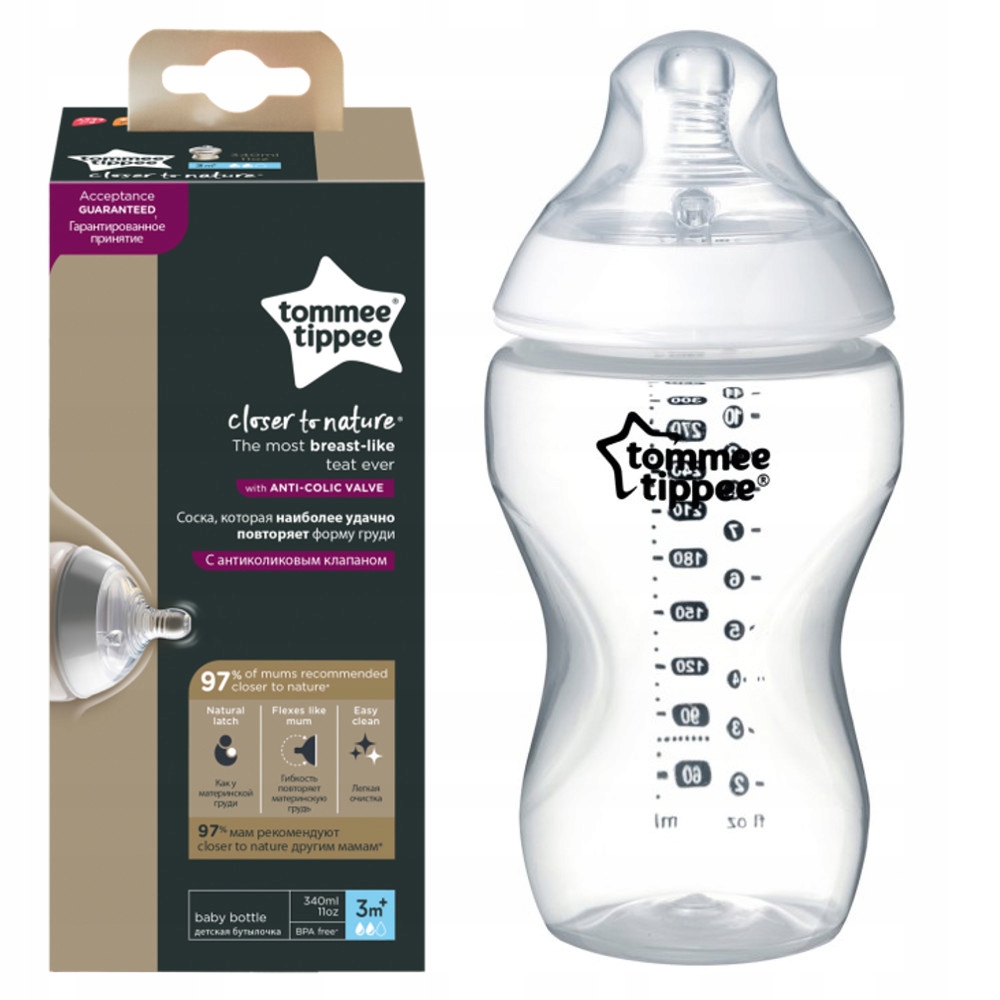 - 1 пляшка Closer to Nature об’ємом 340 мл із технологією Easivent Anti-Colic, без бісфенолу А (BPA)