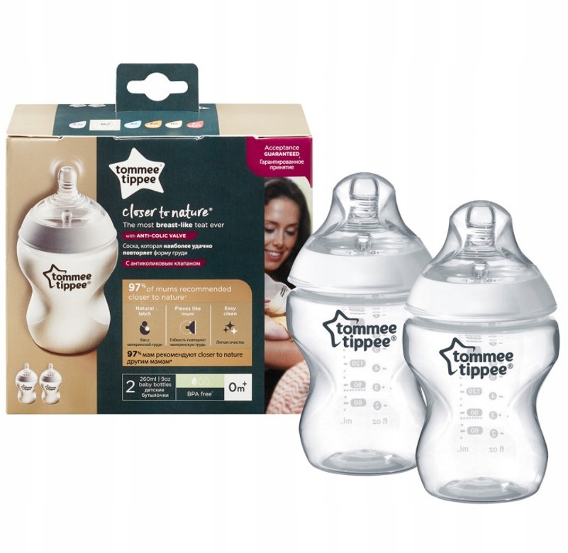 - 2 пляшки Closer to Nature® 260 мл, з технологією easivent™ anti-colic, без бісфенолу А в оригінальній упаковці.