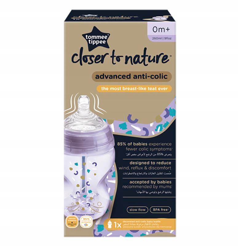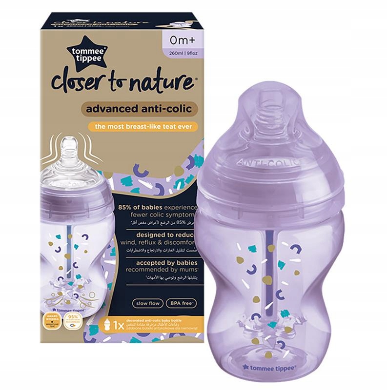 Пляшечка Tommee Tippee Anti-Colic Plus Anti-Colic Bottle Advanced із серії Closer to Nature® була розроблена для забезпечення оптимальної вентиляції під час годування, яка є безпечною та інтуїтивно зрозумілою p>Унікальна вентиляційна трубка, антиколіковий клапан і унікальна форма соски, що полегшує її розміщення в роті, зводить до мінімуму заковтування дитиною повітря.
