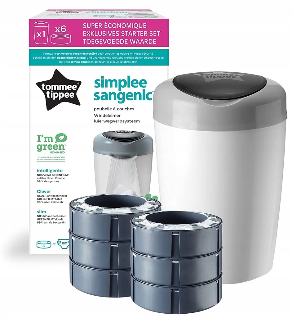 Контейнер Sangenic Simplee від Tommee Tippee – це простий, естетичний і компактний спосіб підтримувати дитячу кімнату чистою та приємно пахнути