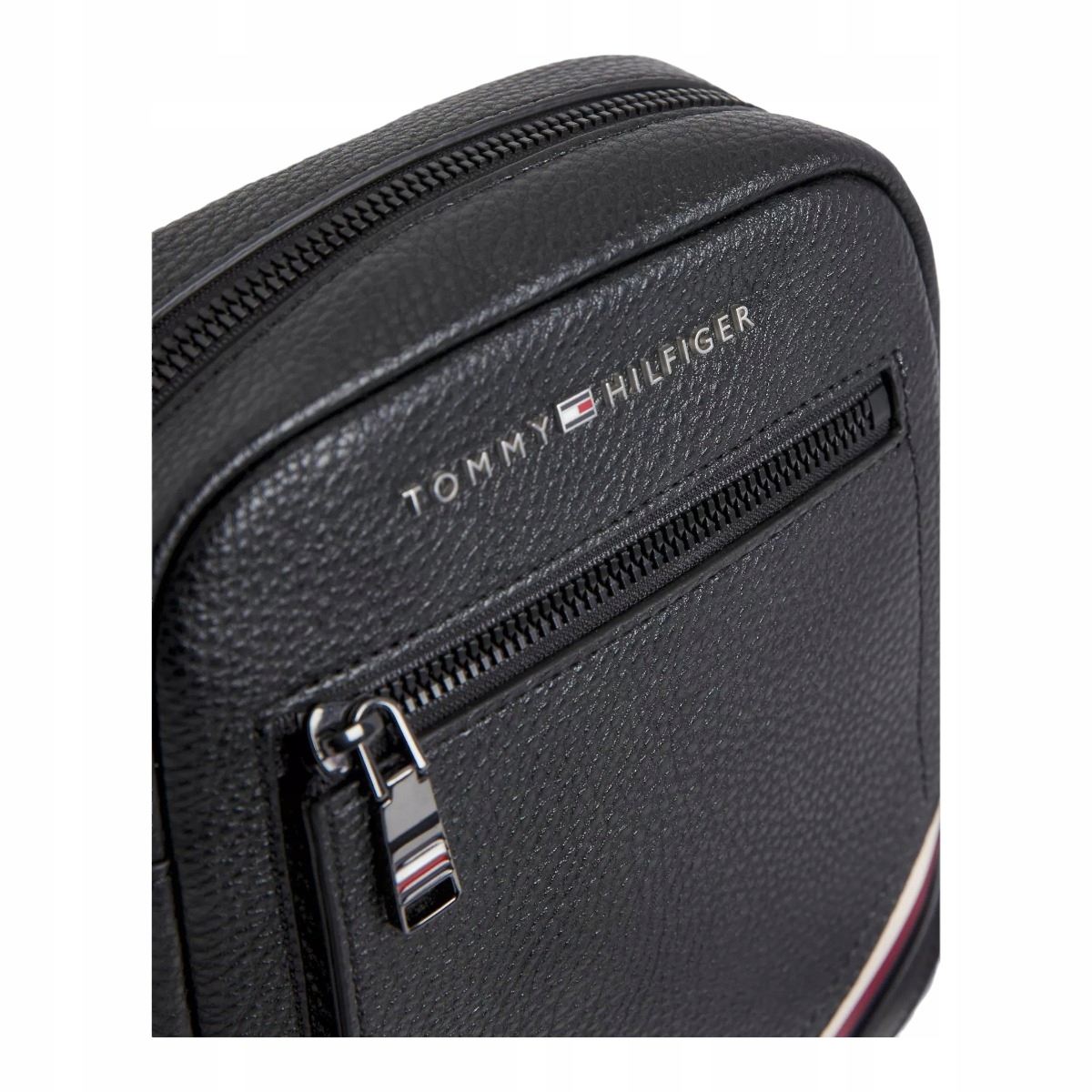 - Логотип: опуклий логотип виробника та напис «TOMMY» HILFIGER» спереду та шкіряний ремінець у кольорах виробника, всередині тиснений логотип виробника та напис «TOMMY HILFIGER», кольори виробника на блискавці, логотип виробника та напис «TOMMY HILFIGER» вигравірувані на фурнітурі