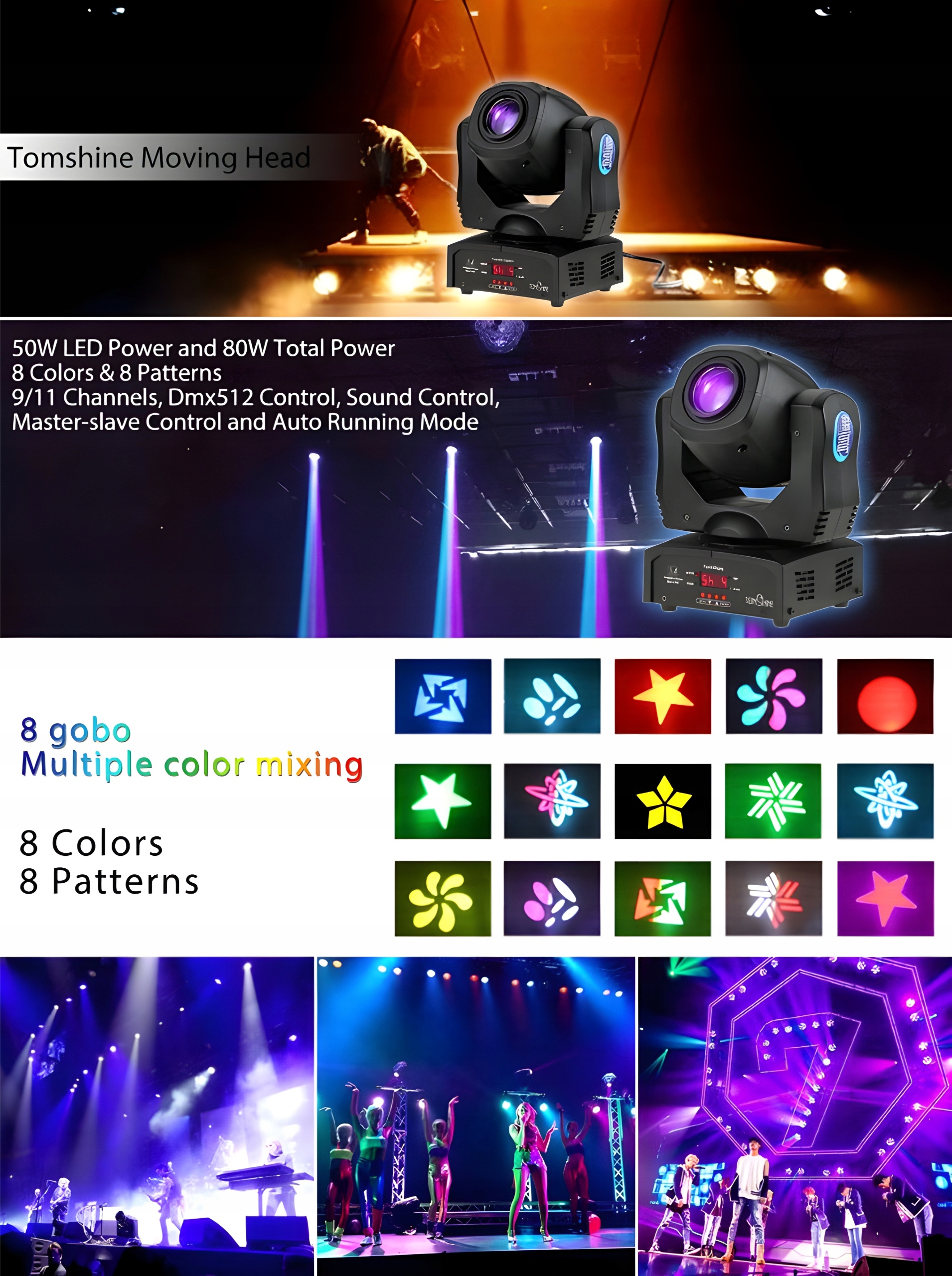 TOMSHINE MOVING HEAD GOBO LIGHTING DJ LED DMX RGB 80W i.e. BEAMZ ОПИС