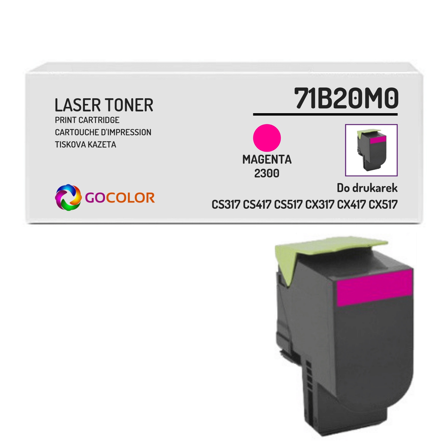 Заміна MAGENTA, замінює оригінальний тонер із кодом: 71B20M0 071B20M0 0071B20M0.