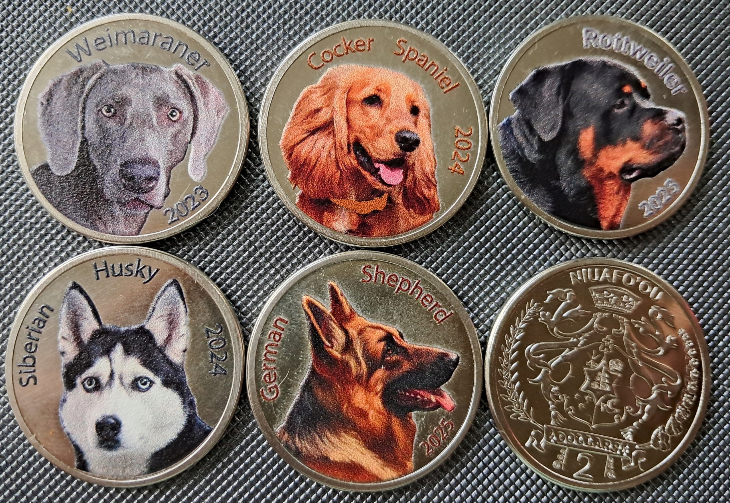 TONGA Niuafo'ou набір з 5 монет СОБАКИ колір