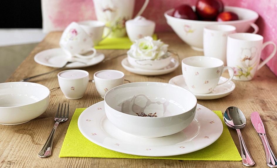Прикраса трояндової квітки та маленьких троянд разом із рожевим та зеленим кольором створює романтичну та заспокійливу атмосферу, яка стане ідеальним доповненням до вашого столу та інтер’єру. Колекція Thine Poetica тут, щоб принести красу природи та унікальний чеський шарм. 4 Ваші столи будуть прикрашені найбільш ніжною квітковою елегантністю, а ваші моменти, проведені з родиною та друзями, будуть наповнені романтикою та затишками.