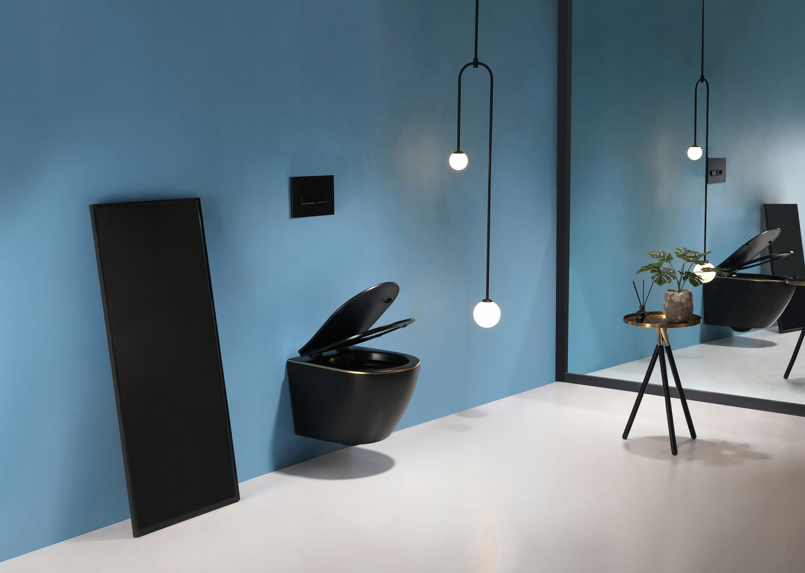 ТОНКА РАМКА 35 см ARBO + УНІТАЗ ARBO LINE ЧОРНИЙ / ЗОЛОТИЙ + КНОПКА ВИБІРУ
