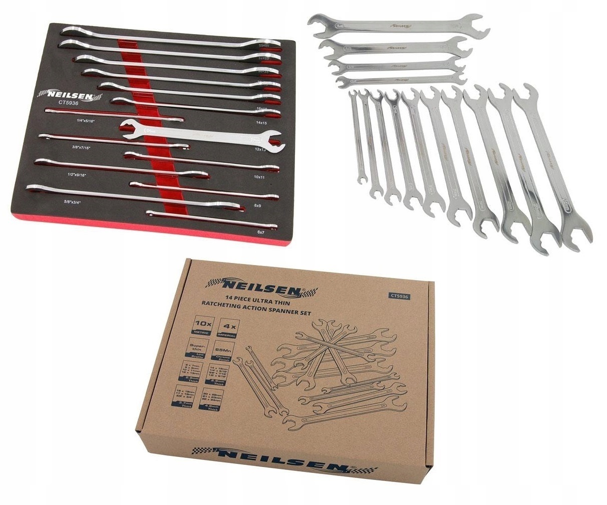 НАДВИЖНИЙ НАБІР ГАЙКОВИХ КЛЮЧІВ, ТОНКІ МЕТРИЧНІ ГАЙКОВІ КЛЮЧІ 6–24 ММ ДЮЙМОВ 1/4–3/4 ДЮЙМОВ З ФУНКЦІЄЮ ХРАПОВИКА NEILSEN.