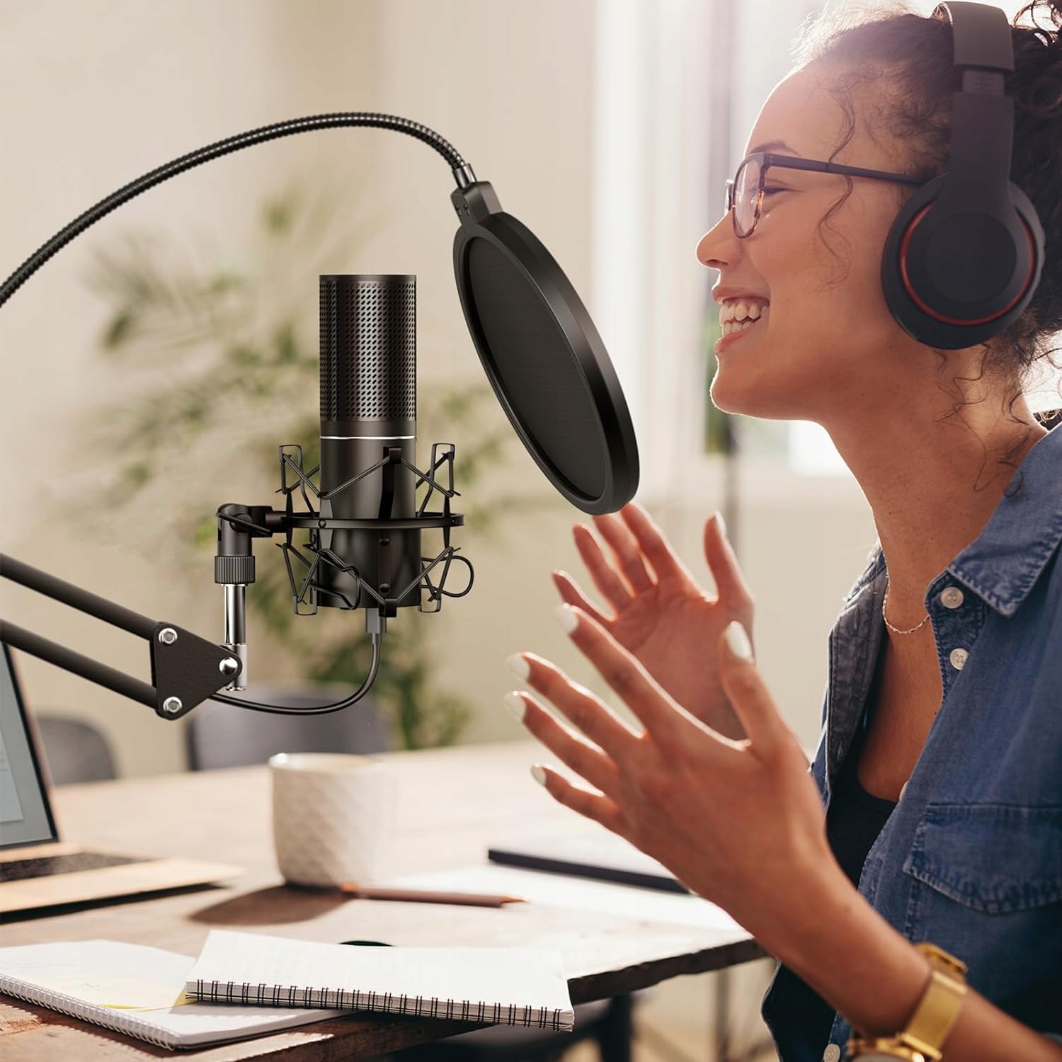 Кардіоїдний конденсаторний комп’ютерний мікрофон для подкастів, ігор, відео YouTube, потокового передавання, запису музики, голосу