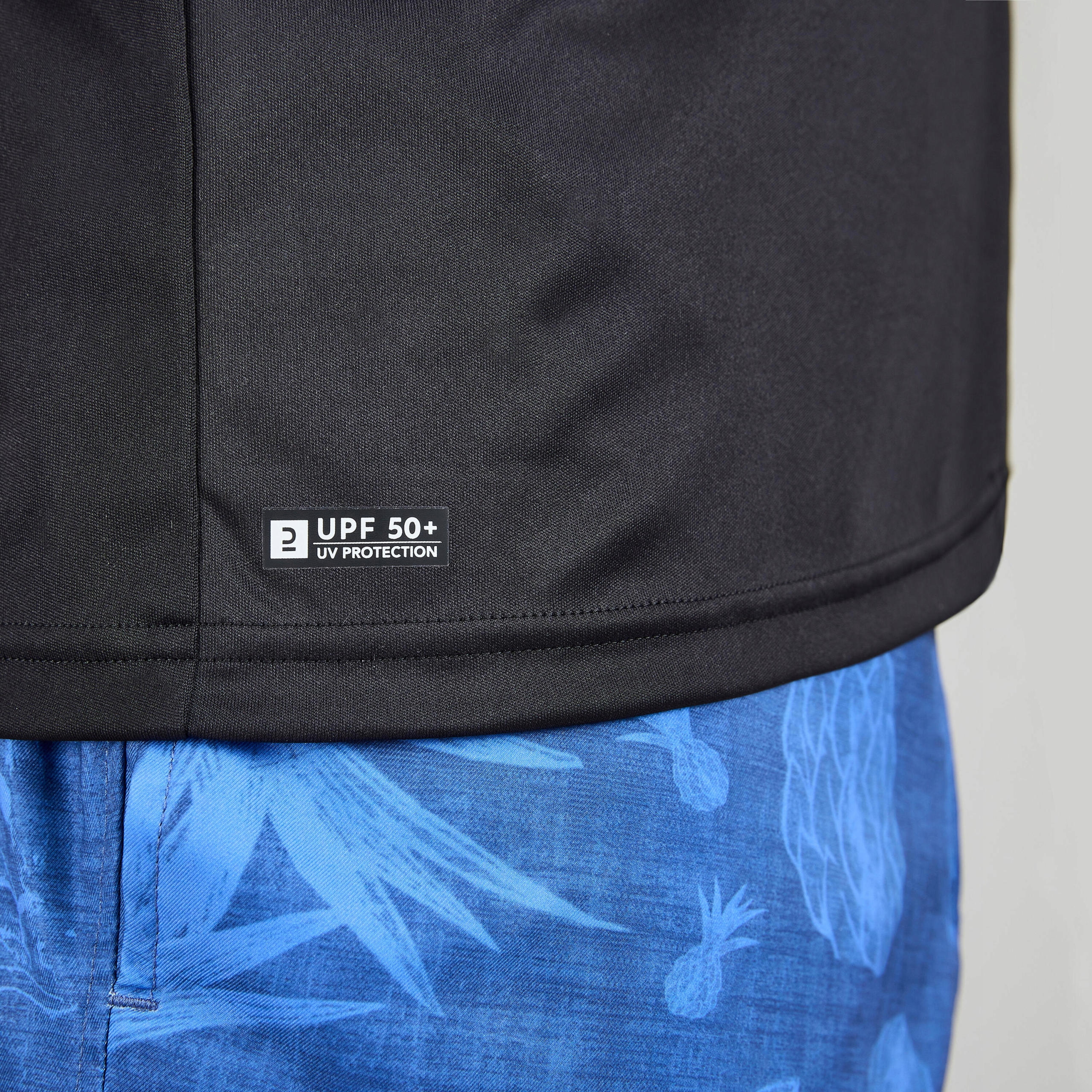 Сорочка для серфінгу проти УФ для плавання. Вільне зрізи полегшує надягання. Він захищає, навіть мокрий. Він зупиняє щонайменше 95% УФ. Тренінги до 1 год. Стабільність у хвилях.