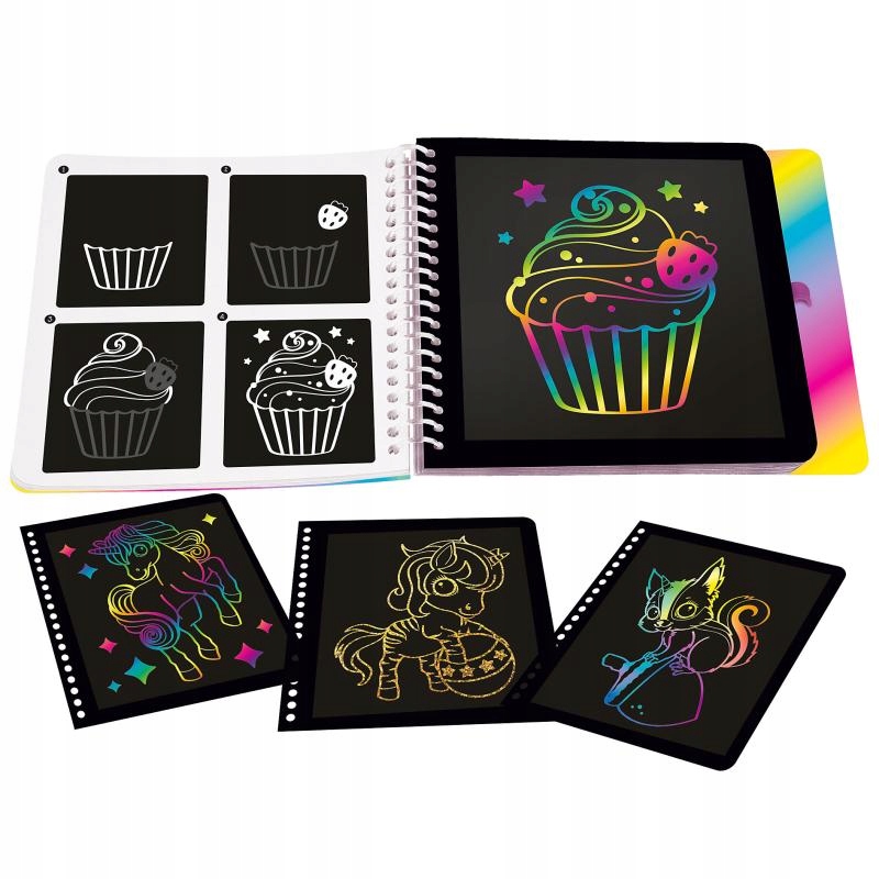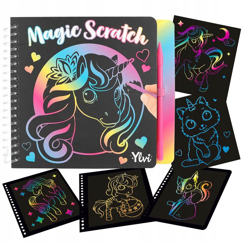 Набір для творчості Miss Melody's Mini Magic Scratch, що включає 19 сторінок для самостійного створення проектів, інструкції та стилус.