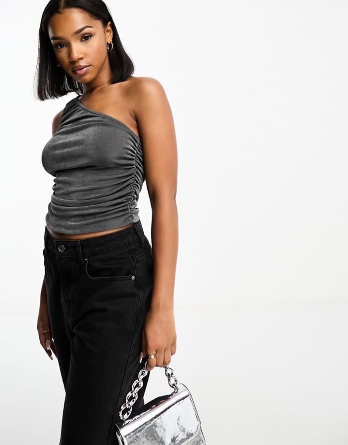 ТОП PIECES GREY В РОБРИЦЮ, ОДНЕ ПЛЕЧЕ (L)