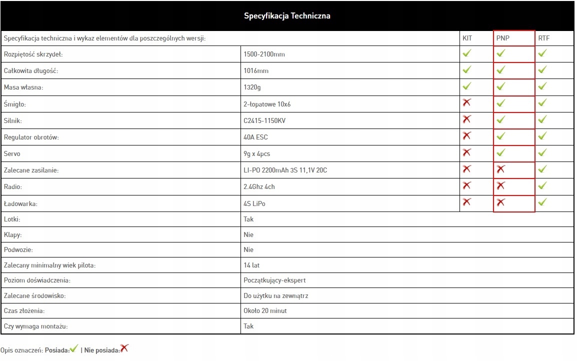 Версія PNP, набір включає модель, двигун, регулятор і сервоприводи. Ви повинні придбати акумулятор, зарядний пристрій, передавач і приймач самостійно.