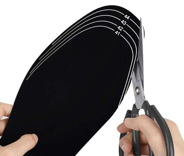 ЛЕГКО DIY FIT - просто виріжте їх до потрібного розміру з боку пальців. Ви можете легко підібрати розмір устілки до свого розміру взуття. Лінію різу та розмір видно на вставці.