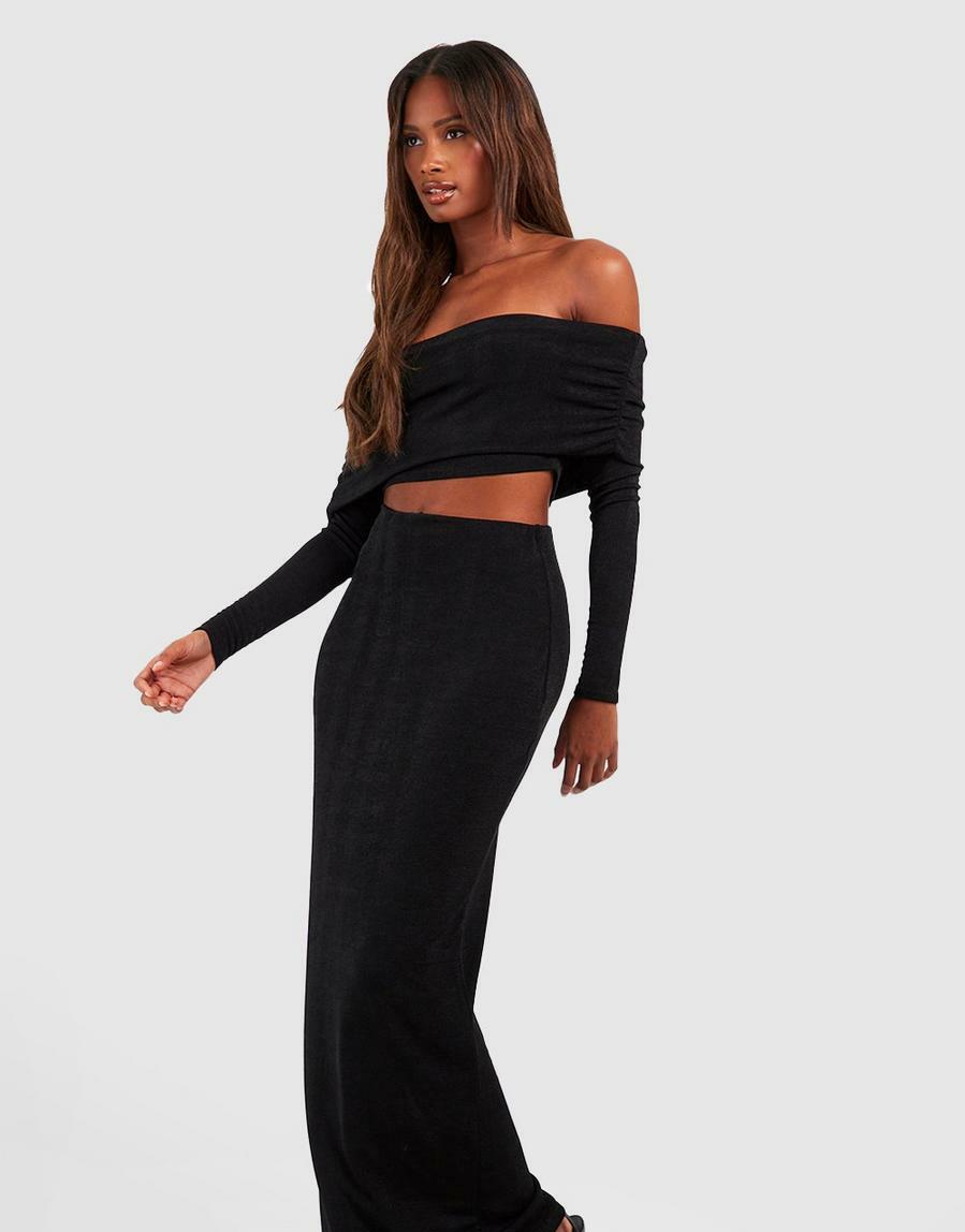 ТОП З ДОВГИМ РУКАВОМ BOOHOO 38 ЧОРНИЙ КРОП НА ГУМЦІ