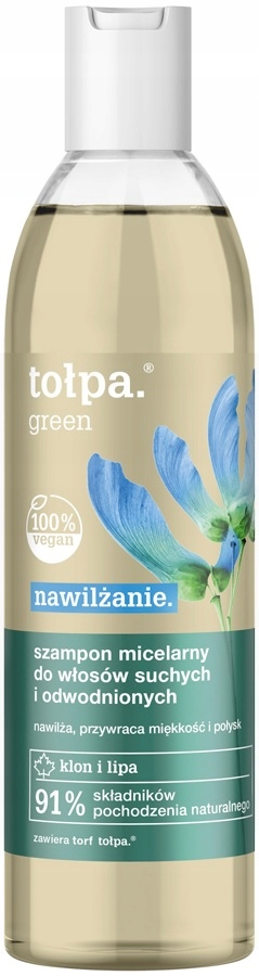 Tołpa - Green - Moisturization - Shampoo for Thin and Delicate Hair - делікатний, легкий шампунь, який добре підійде для щоденного догляду за тонким і ламким волоссям, а також за подразненою шкірою голови.Містить регенеруючий засіб і зміцнюючі інгредієнти, такі як лляне масло та оливкова олія, а бетаїн і молочна кислота відповідають за належне зволоження.