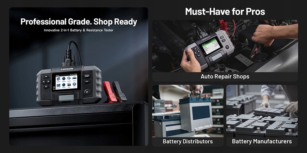 BT600 Plus забезпечує надзвичайно точні результати тестування за лічені секунди. Він вимірює напругу в діапазоні 0-100 В, опір в діапазоні 0 мОм - 200 Ом і аналізує як поточний стан акумулятора, так і всю систему запуску і зарядки автомобіля. Ви можете безпосередньо роздрукувати результати тесту, поділитися ними з клієнтами або зберегти записи друку для використання в майбутньому. Великий кольоровий 3,5-дюймовий дисплей чітко та прозоро відображає результати навіть при денному світлі, а інтуїтивно зрозуміле керування забезпечує легкість використання навіть без попереднього досвіду. Вбудований акумулятор дозволяє понад 14 годин роботи на одному заряді, що робить пристрій ідеальним інструментом навіть для інтенсивного робочого дня.