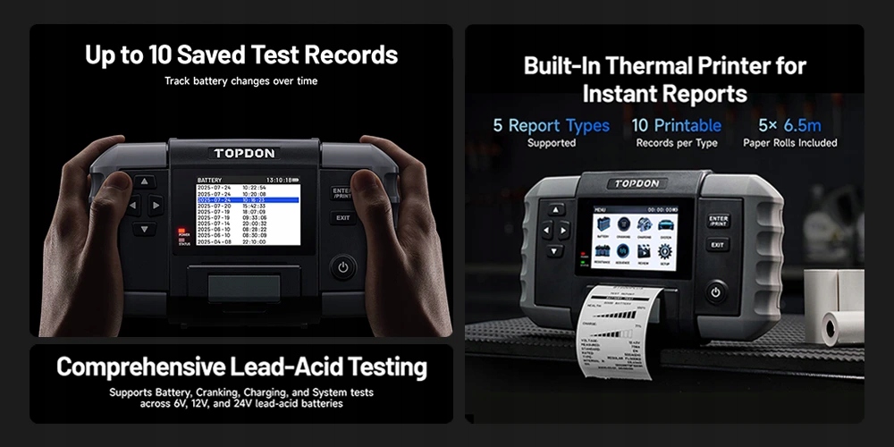TOPDON BT600 Plus – професійний тестер автомобільних акумуляторів для систем 6 В, 12 В і 24 В